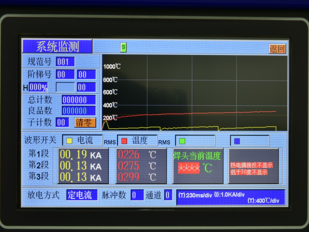 4.實時監(jiān)控顯示焊頭溫度和電流波形