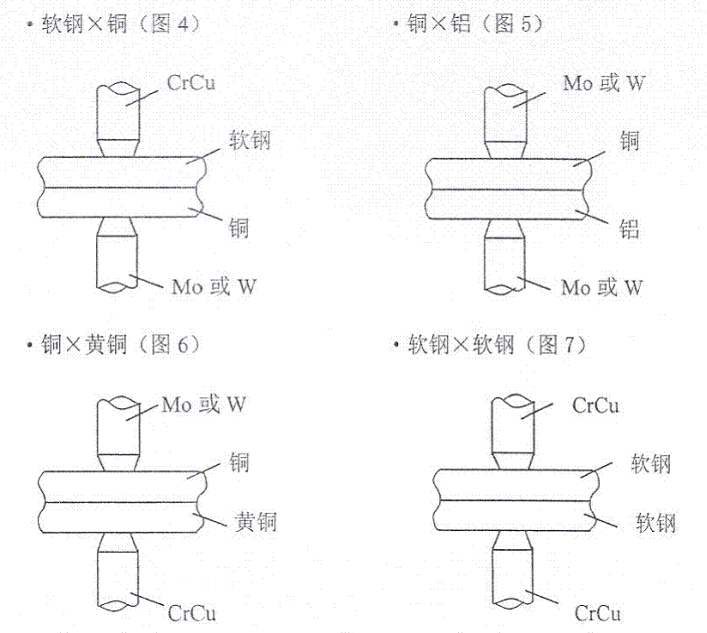 焊接電流可以如下方法比較簡單地求得。最初設(shè)定較低的焊接電流,如果逐漸增大焊接電流,會發(fā)生飛濺。比發(fā)生飛濺時的電流值稍低的電流值就是適當(dāng)?shù)碾娏鳌k娏髦蹈鶕?jù)焊接機(jī)加壓系統(tǒng)的追隨性的不同而不同。焊接機(jī)的追隨性愈好,愈容易施加較小的加壓力和大的導(dǎo)通電流,即獲得最佳的焊接效果。